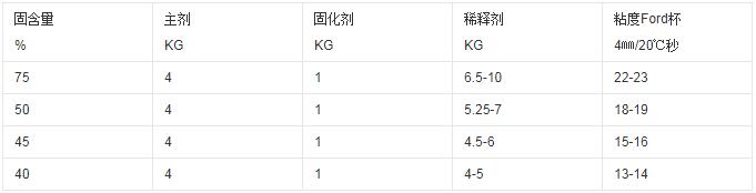 使用說明:(重量)5份主劑配:1份固化劑:醋酸乙酯6-8-10(根據(jù)涂膜厚度)